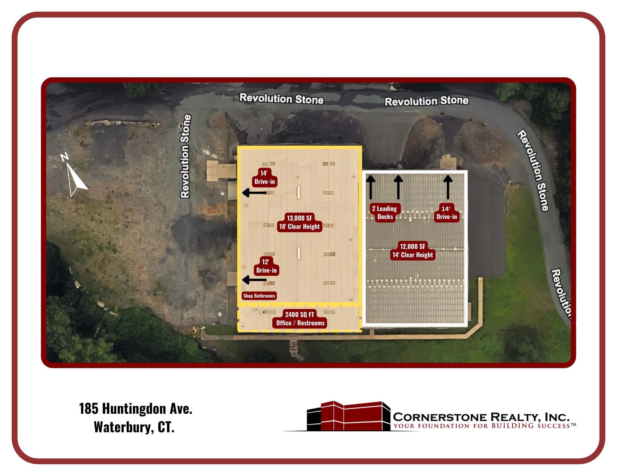 +/- 26,700 square feet of industrial warehouse, manufacturing, and office space available at 185 Huntingdon Avenue in Waterbury, Connecticut.